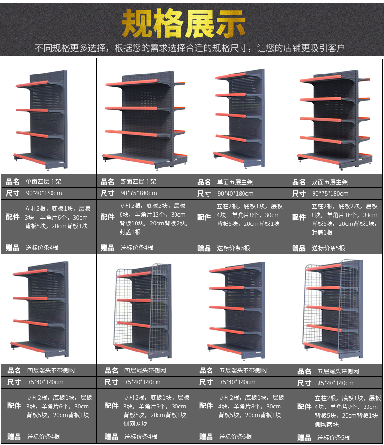 貨架尺寸:900*40*1800mm單面,900*750*1400mm雙面