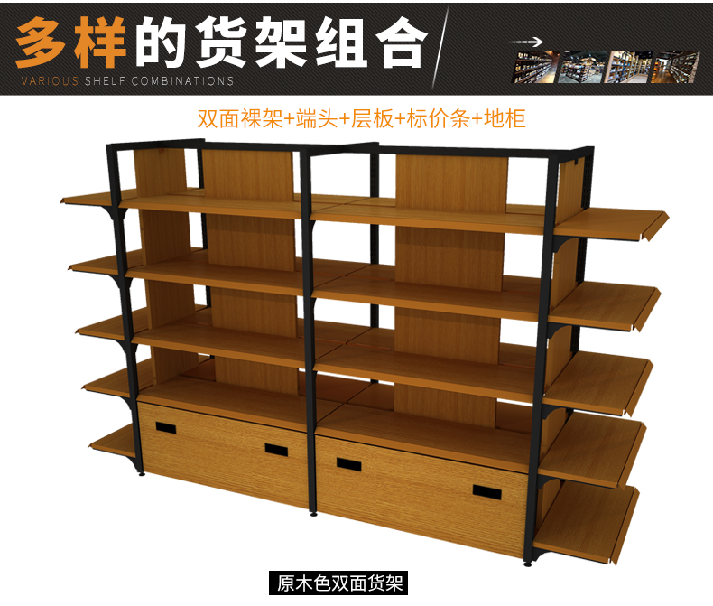 4 單面、雙面以及端頭木紋超市貨架,可使用多種組合方式。