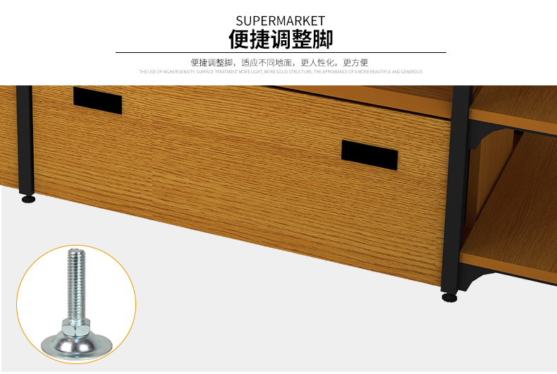 2 木紋超市貨架每層承載加高70-75KG,在滿足展示的同時(shí),也滿足了倉儲的需要。