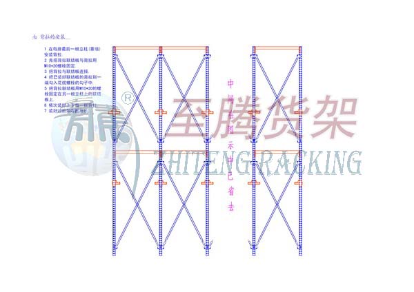 1 在每排最后一根立柱(靠墻)安裝背拉.
