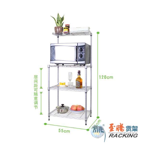 至騰微波爐架一般都為四層,除了放置微波爐以外,還可以擺放烤箱、電磁爐、熱水瓶、電飯煲以及日常廚房小用品等等。它的承載力超強(qiáng),每層承載力大于40KG,無須擔(dān)心會承載不住這么多這么重的廚房用品。